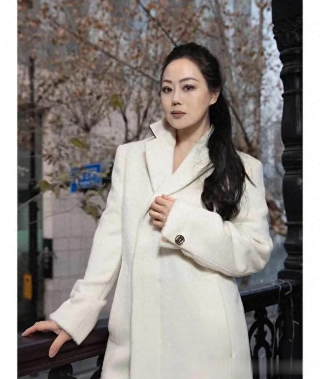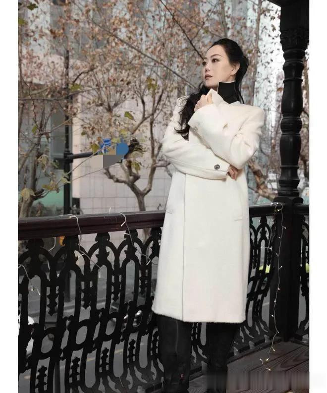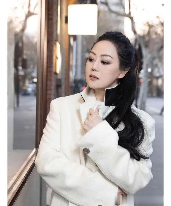 61岁章小蕙换风格后气质大变! 穿白色羊绒大衣+小黑裤, 简约贵气